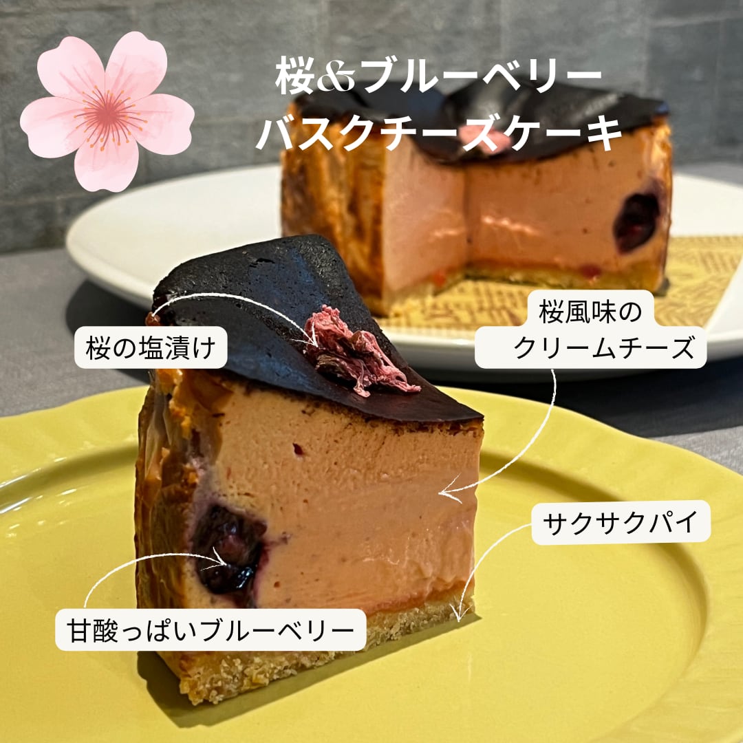 ブルーベリーの酸味と、仕上げの桜の塩漬け。