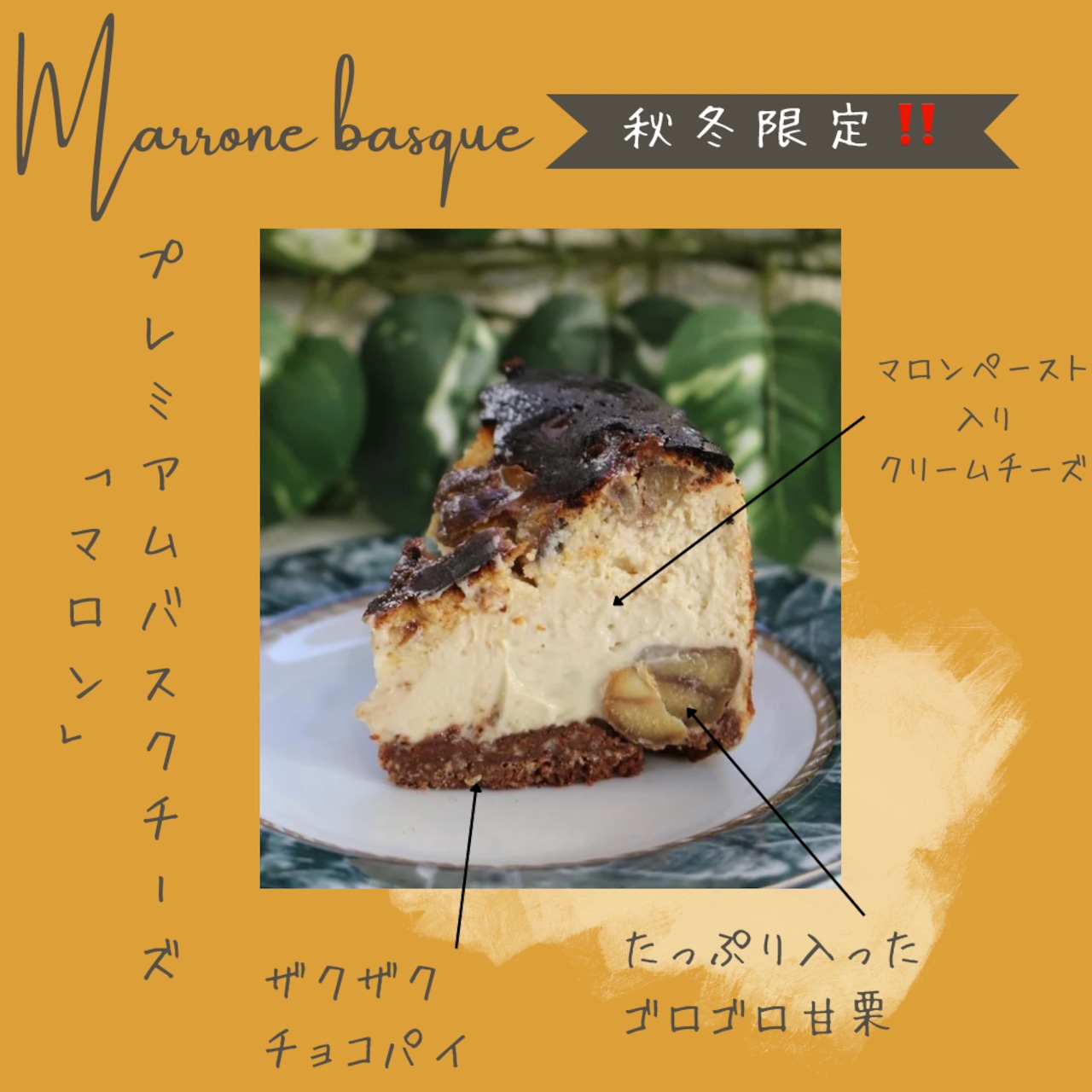 毎年人気のバスクチーズケーキに、濃厚なマロンペーストをたっぷり練りこみ、